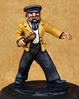 I really like this figure. I painted her skirt using pink craft paints. I was seeing if I could handle blending, which is hard to do using pink craft paints--just not enough pigment. In the end, the figure looks pretty good on the table. Our eyes tend to blur the colors together more than does an old digital camera close-up. It's like looking at an Impressionist painting close-up and then from farther away.